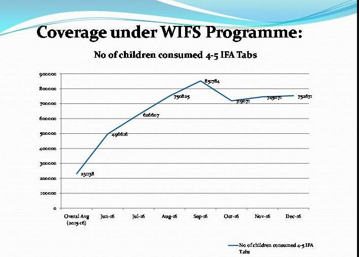 - WIFS programme was launched on 15thJuly, 2013 for weekly administration of Iron & Folic Acid Supplements (WIFS) to all students from class 6th to 12th of Delhi Govt. and Delhi Govt. Schools.